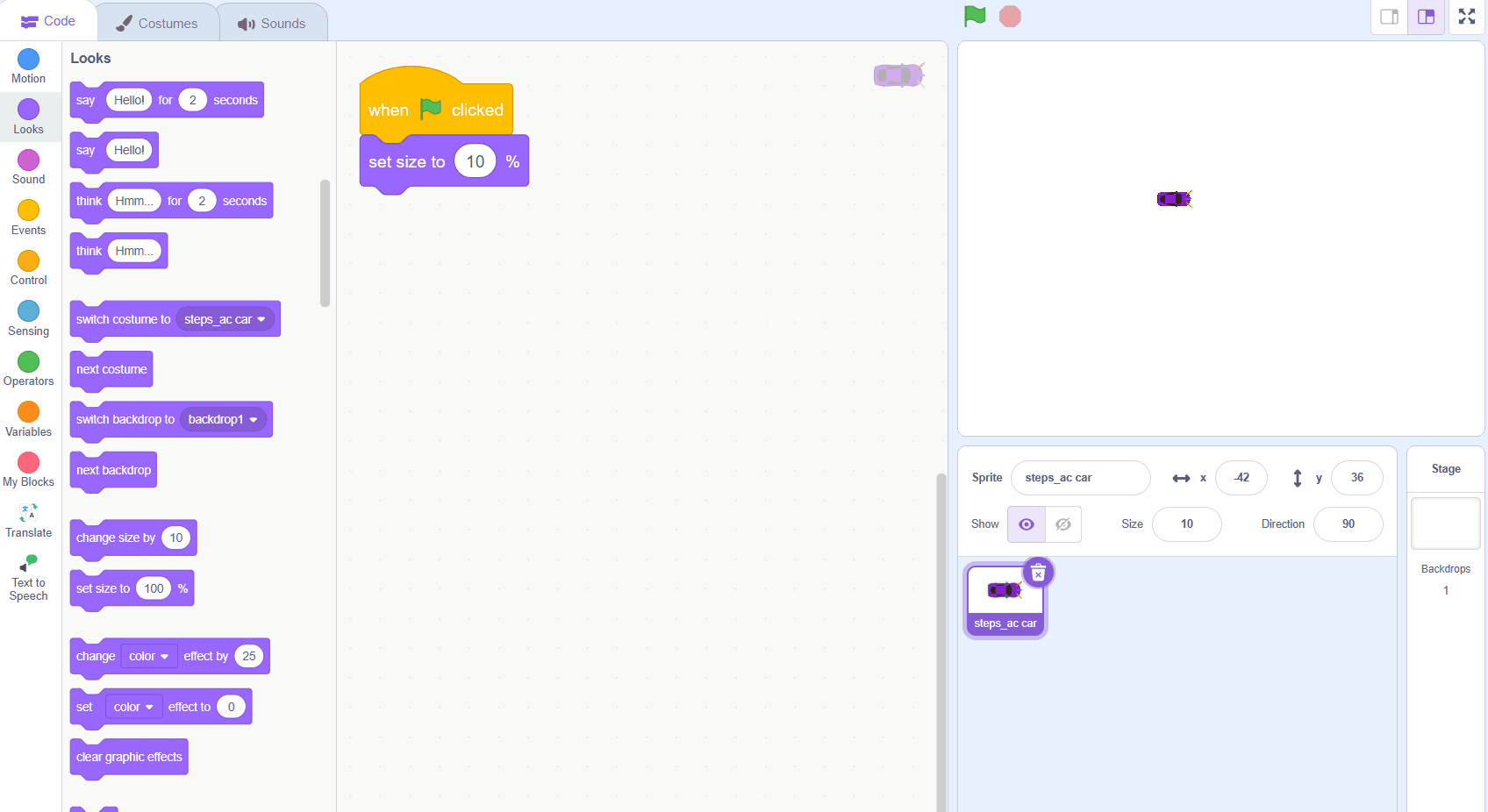 As the car sprite is very large, we'll need to shrink it so that it has room to move around. We're going to shrink it to 10% of it's original size.