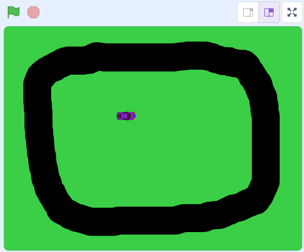 Next we're going to draw a race track. First we will draw a green box that covers the stage area and then we will draw a black track. Follow these steps: