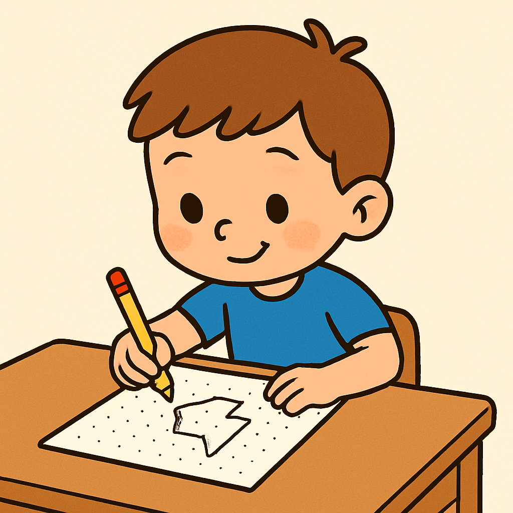 Set the ground rule clearly: one action per step, in order—no guessing, no skipping, no extra lines. If someone makes a mistake, pause and fix the first wrong step, then continue. Emphasise that careful, step-by-step drawing is how robot artists make the picture appear.