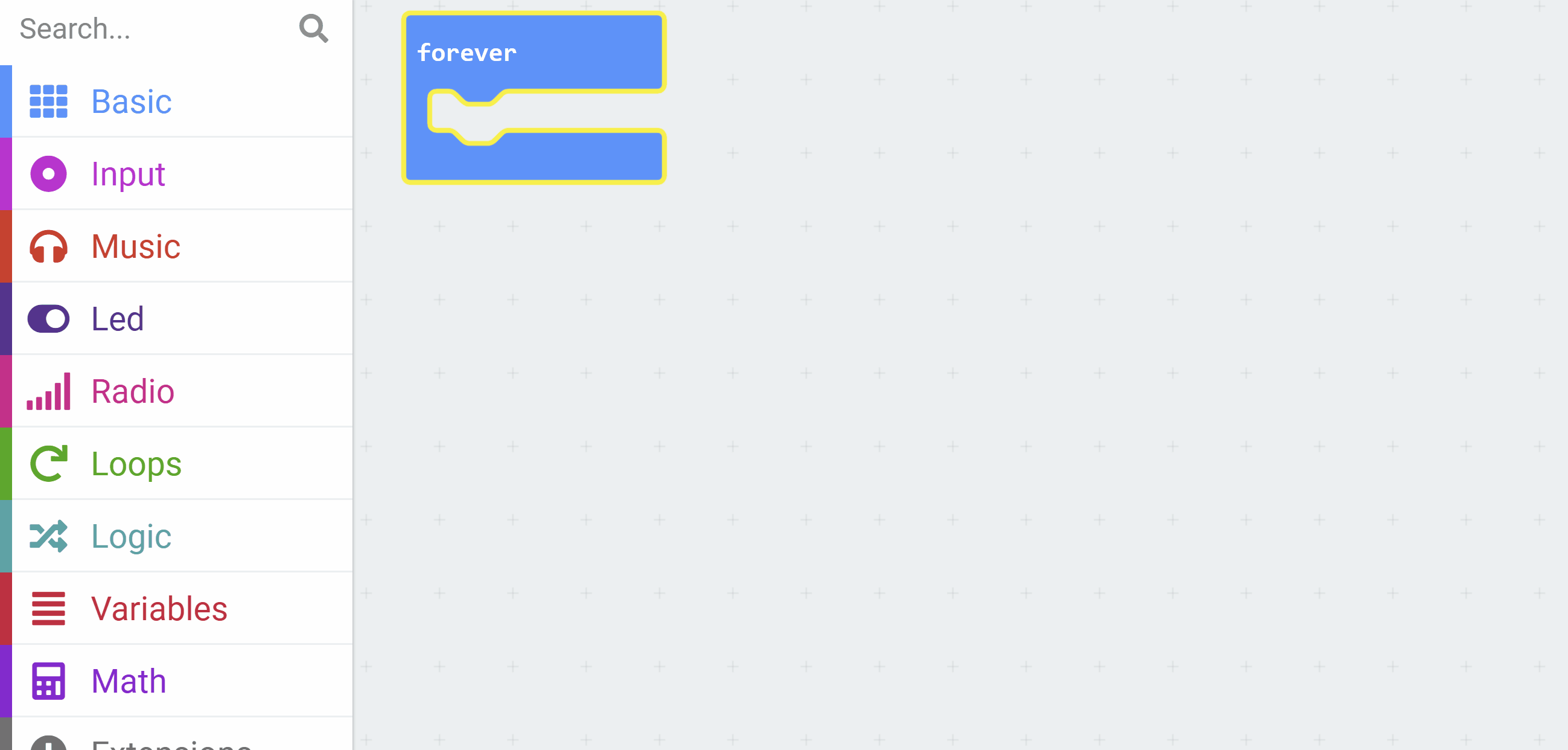 Open the MakeCode editor at makecode.microbit.org and start a new project.