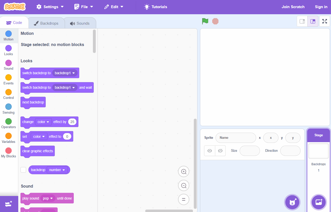 Go to the Scratch website using the link below and click on the 'Create' link in the blue bar at the top.