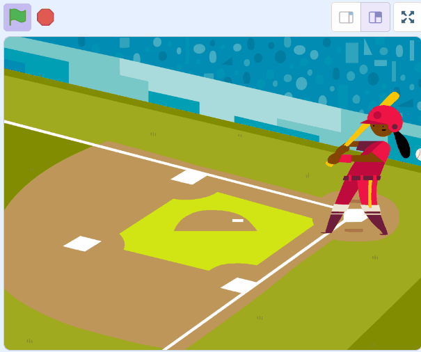 Add the Batter sprite from the sprite library and then add the following code to make her swing bat when you press the space bar.