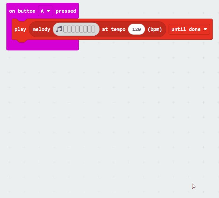 })The code above sets up the music to play when you press the 'A' button. The melody is represented by '- - - - - - - - ', and '120' is the tempo, which you can adjust to make the music faster or slower.