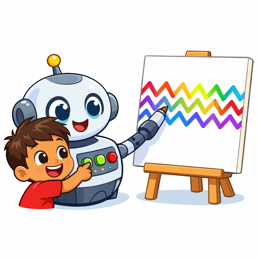 Today, we're going to learn how to make our robot create amazing patterns! We see patterns everywhere—on our clothes, in the floor tiles, and in our favorite songs. A pattern is a rule that repeats. Our robot loves to follow rules, and today it will follow a set of instructions to make a colorful pattern.