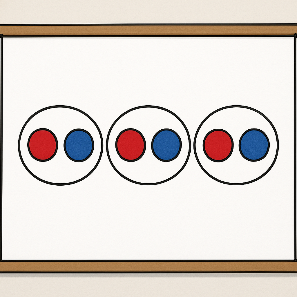 Repeat that pair two more times in a neat row so it reads red–blue, red–blue, red–blue.